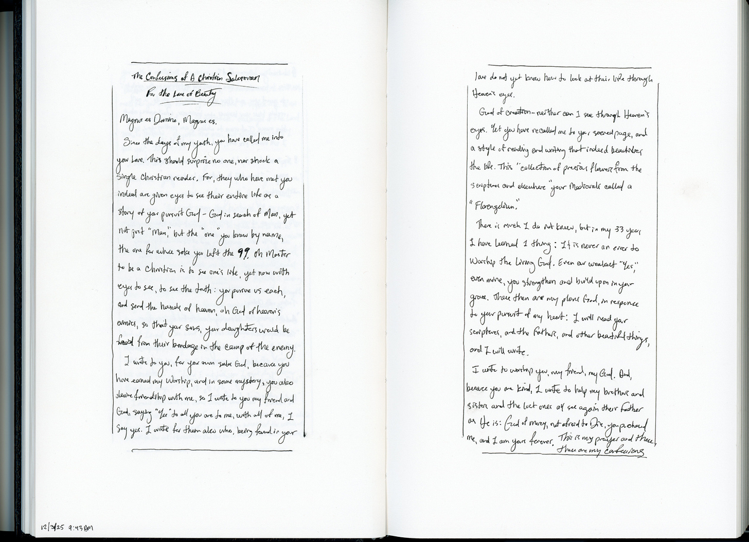 Yet you have recalled me to your sacred page, upon which the heavens write, and you have called me to a style of reading and gathering the most beautiful things I find in a way that indeed beautifies the life: Florilegium.
